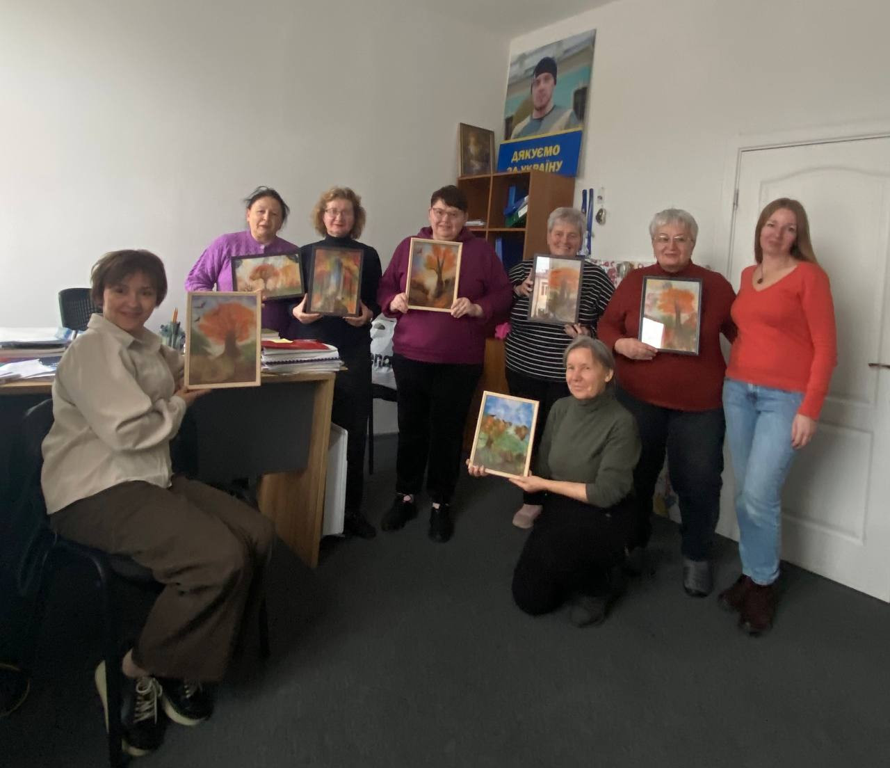 Це був чудовий день. Немов аура огорнула наших учасниць, що поринули у творчість. Сюжет обрали невибагливий - золота осінь. А у фіналі отримали дивовижні, дуже різні картини, куди мами, дружини полонених, зниклих безвісти, загиблих захисників України щедро вклали нотки яскравого жовтня з промінчиками сонця та трошки туги за рідними людьми.